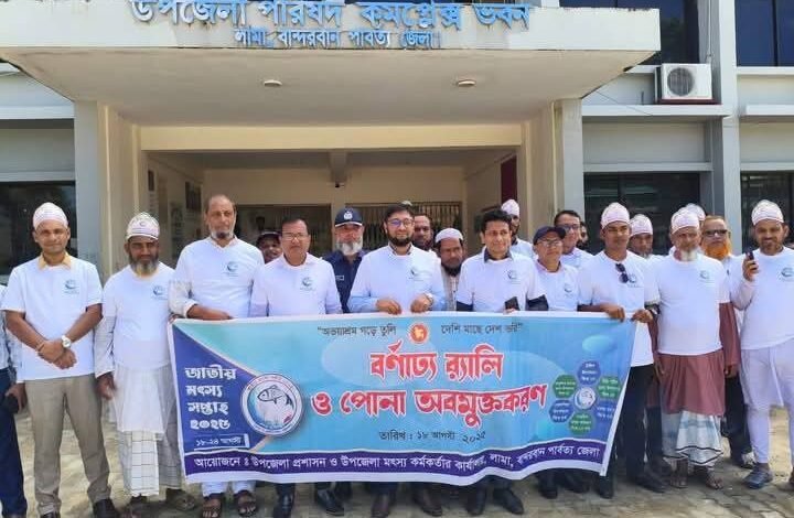মো.ইউছুপ মজুমদার এম এ,বান্দরবান: “অভয়াশ্রম গড়ে তুলি, দেশি মাছে দেশ ভরি” এই প্রতিপাদ্যকে সামনে রেখে বান্দরবানের লামা উপজেলায় ১৮আগষ্ট, রোজ সোমবার লামা উপজেলা প্রশাসনের হলরুমে পালিত ছয়েছে জাতীয় মৎস্য সপ্তাহ ২০২৫ । এ উপলক্ষে র্যালী, আলোচনা সভা এবং উপজেলা পরিষদের পুকুরে মৎস্য পোনা অবমুক্ত করা ও পুরস্কার বিতরণ অনুষ্ঠিত হয়।