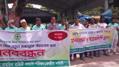 চাঁপাইনবাবগঞ্জে মাদকের বিরুদ্ধে মানববন্ধন অনুষ্ঠিত